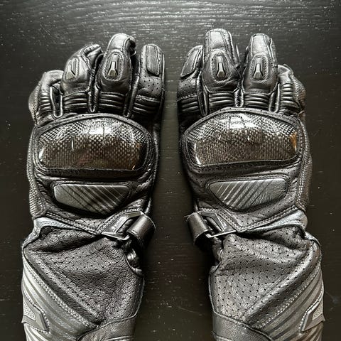 Dainese Comfortech Protector MC-hansker i svart. Hanskene har forsterkede og støpte knokebeskyttere merket Comfortech Protector, samt ekstra beskyttelse over fingre og håndflate. De er CE-sertifisert kategori II. Justerbare stropper ved håndledd gir tilpasning og sikring. Egnet som beskyttende hansker til motorsykkelkjøring. Kan sendes mot at kjøper betaler porto kr.69 med Post nord eller hentes i Rygge. Se også gjerne mine andre annonser.