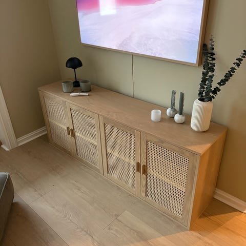 Selger denne «Raffels» sjenken fra Bohus. Hvitoljet eikefiner og ben i sort metall. Litt bruksmerker på toppen (se bilde). Må hentes på Damsgård/Gyldenpris