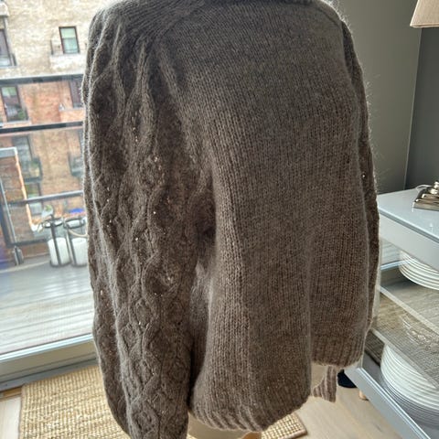 Hjemmestrikket genser i ull, type regnduft str S/M