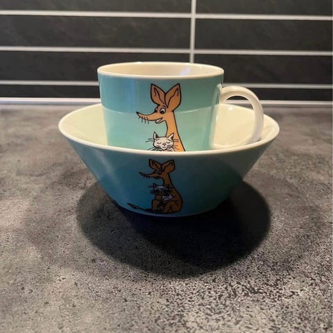 Designet er "Teema", samme form og størrelse som mummikoppene og fatene.