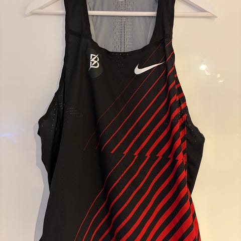 Singlet i hvit farge med «YMR Track Club»-trykk i mørk grønn på brystet. Laget i lett og pustende materiale egnet for løping og annen trening.