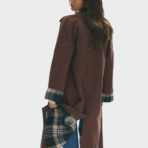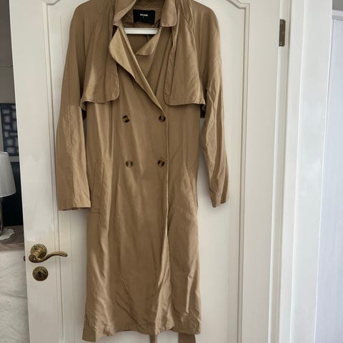 Fin, lett, kamelfarget, ny lang kåpe til dame. Splitt nederst bak på kåpen.