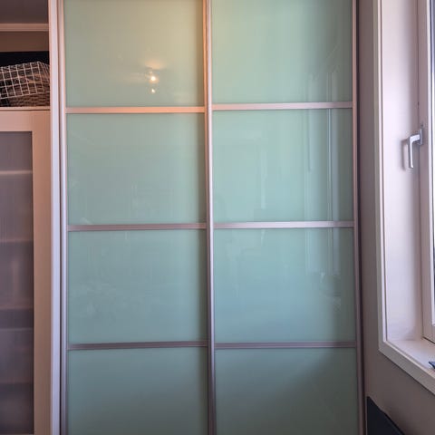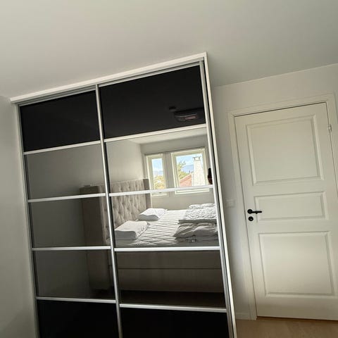 Selger to skyvedører med speil. Skinner medfølger. Må hentes. Førstemann til mølla!