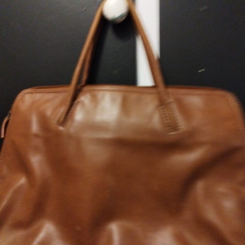 Skinn PCveske i brunt skinn , skulderreim, Don Donna 500 kr. Veske