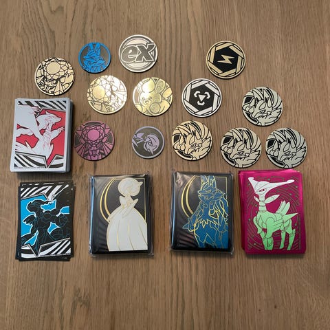Pokémon korttilbehør sett med kort, terninger og markører