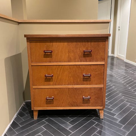 Elegant kommode i tre med malte skuffer – vintage look