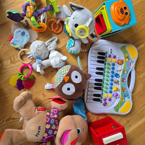 Diverse kvalitetsbabyleker fra blant annet fisherprice, sebra, playgro og Lamaze.