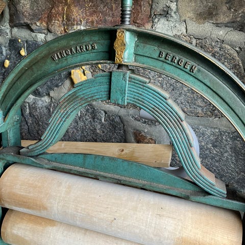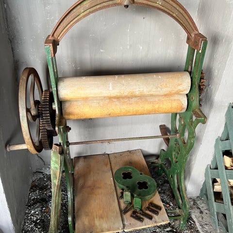 Klesrulle i solid støpejern tilsalgs.