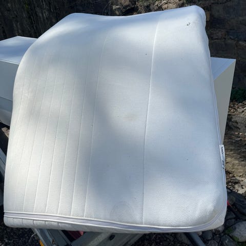 IKEA madrass i lys tekstiltrekk. Madrassen har quiltet overflate med jevnt fordelte knapper for å holde polstringen på plass. Egnet som liggeflate på seng eller sovesofa. Passer til bruk på soverom eller gjesterom der det er behov for en enkel madrassløsning.