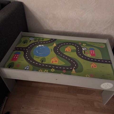 Togbord fra Stoy. Med plate som kan snues. Er noe merker selges derfor billig. Men er fremdeles mye fin lek igjen! Perfekt for en mellom 1 og 3 år.