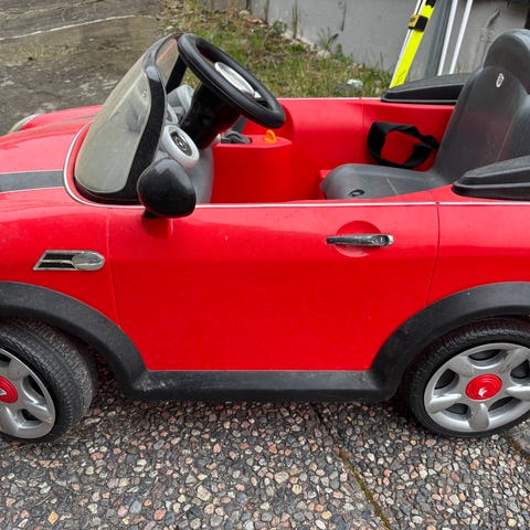Bil barn inntil 25 kg kan kjøre. Spiller både musikk, lyder og lyser.