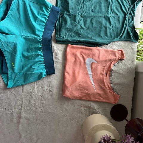 Nike treningsshorts, men to lag. Lommer og knyting i siden. T-skjorte fra casall som er litt kort over magen og litt lengde på ermene. Passer til løping, fitness og annet.