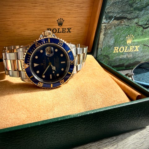 Et prakteksemplar av Panerai Submersible "Blue Notte" selges. Dette er en råtøffe klokke som bærer det ikoniske Panerai designet og kvaliteten. Klokken er kjøpt ny i utlandet og kommer komplett med ytterboks, boks, papirer/servicekort, tags og manualer. Klokken ble kjøpt fra bruktforhandler i utlandet og MVA er betalt. I tillegg til gummireimen medfølger også en original Panerai nylon strap. Klokken ble kjøpt ny nov 2021, og har garanti frem til nov 2029.