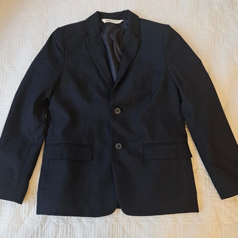 Selger pent brukt sett med dressjakke i stør 146 og dressbukse i str 140. Mørkeblå farge. Perfekt til konfirmasjonen og 17.mai