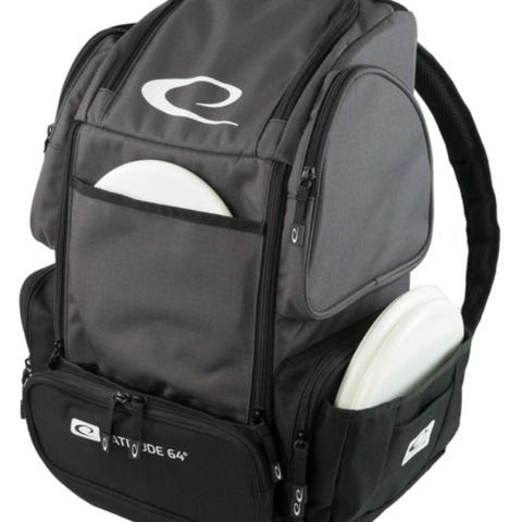 Latitude 64 discgolfsett med bag i plast, flerfarget. Settet inneholder flere ulike discer fra blant annet Latitude 64, Discmania, Discraft og andre produsenter, i forskjellige farger og typer (driver, midrange og putter). Discer og bag er beregnet for bruk til discgolf og passer til spill på bane eller trening. Bagen har plass til flere discer i hovedrommet og ekstra lommer til tilbehør.