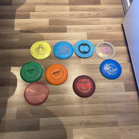 Noen disker er godt brukt. Andre meget lite. Sekken trenger en liten vask men ellers i meget fin stand.