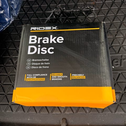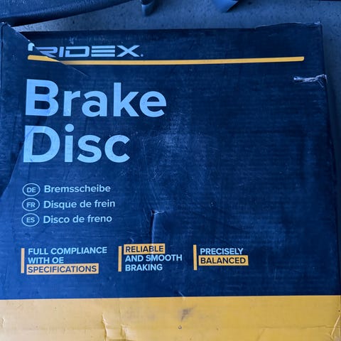 Settet består av bremseskiver og bremseklosser levert i originalemballasje fra Ridex. Delene er beregnet for bruk på Volkswagen-personbil. Nøyaktige spesifikasjoner som dimensjoner, aksel (foran) og kompatible modeller bør kontrolleres mot delenummer på eskene eller i bilens deleliste før montering.