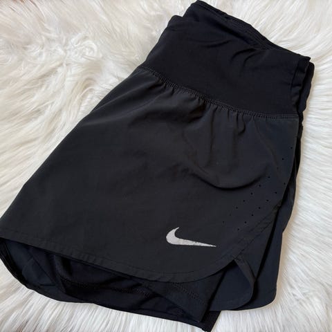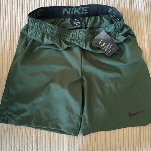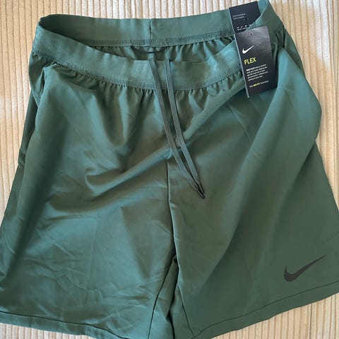Nike Dri-Fit treningsshorts for herre i størrelse L. Shortsen er grå og laget i et lett, teknisk materiale med fukttransporterende Dri-Fit-teknologi. Elastisk linning med snøring for justerbar passform. Modellen har innershorts og perforerte detaljer nederst på baksiden for bedre ventilasjon. Egnet til fitness og annen trening innendørs og utendørs.