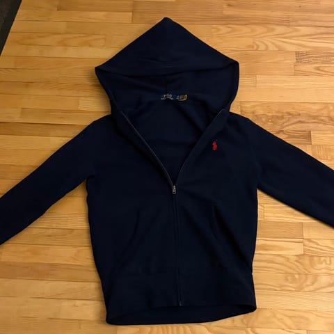 Ralph Lauren hettegenser for herre i størrelse XS. Genseren er blå og har hette med snøring samt lomme foran. Brystet har brodert Ralph Lauren-logo.