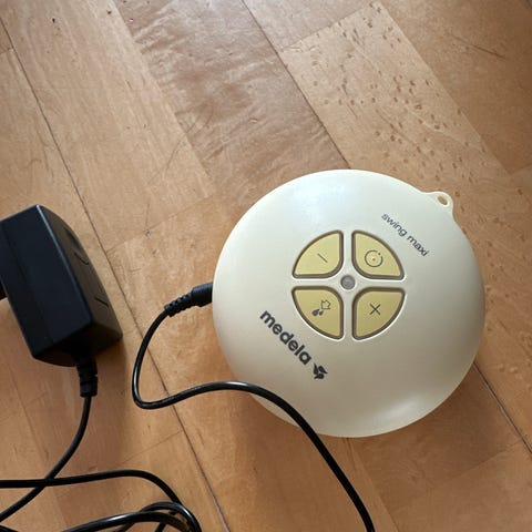 Medela Swing elektrisk brystpumpe. Kompakt pumpeenhet med kontrollknapper på fronten. Leveres med brysttrakt, slange, flaske, strømledning og brukerveiledning slik det vises på bildene. Egnet for pumping av morsmelk hjemme eller på farten. Enkel å montere, bruke og rengjøre, og kan brukes med Medela-flasker og tilbehør som passer til Swing-modellen.