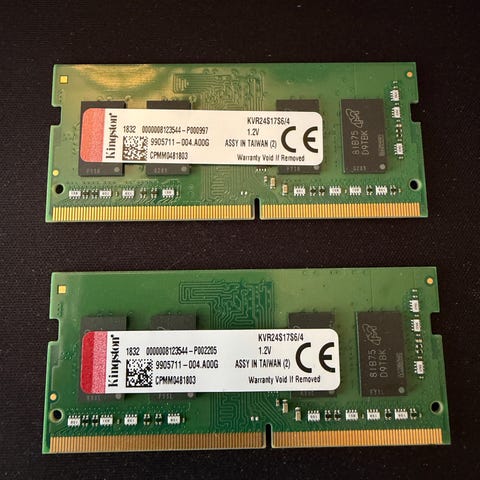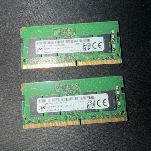 2 stk Kingston 8Gb PC4 (1RX16) 3200AA minnebrikker, selges samlet