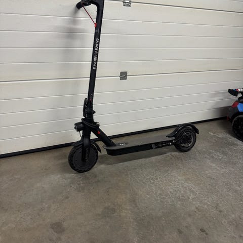 UP 4 sale en E-Wheels E2S V2 Pro elektrisk sparkesykkel i stilig sort med røde detaljer. Dette er en populær og solid modell som er pent brukt og fungerer som den skal.