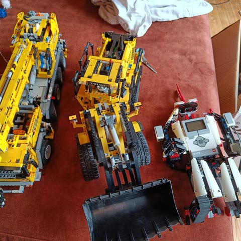 Gravemaskin,lastebil og frontlaster,alle med byggebeskrivelser.