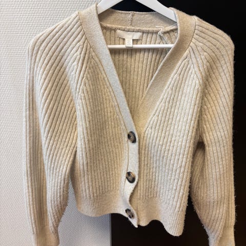 Beige cardigan fra H&M i størrelse XS.