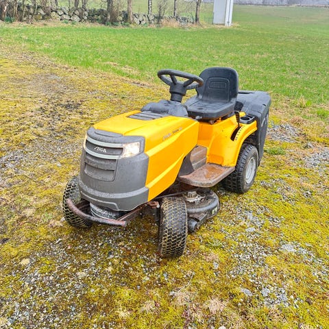 Selger en Stiga sitteklipper. Starter og går som den skal og klipper fint. Hydrostatdrift gjør den veldig enkel å kjøre, bare trykke på pedalen for fart frem og tilbake.