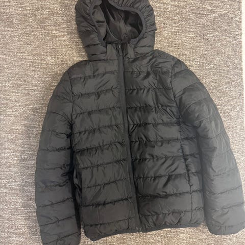 Tommy Hilfiger dunjakke for barn i størrelse 152. Jakken er mørk blå og laget i polyester med dunfôr. Modellen har avtagbar hette (knappefesring). Egnet som ytterjakke for unisex barn i hverdagsbruk og til utendørsaktiviteter i kjøligere vær. Liten rift ytterlig på høyre arm (se bilde).