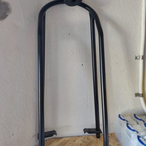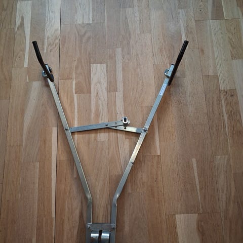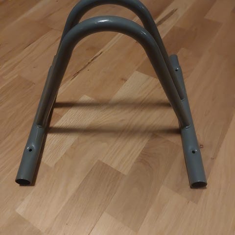 Sykkeloppheng / sykkelstativ til vegg. Noe små rustflekker. 13 cm bredt.