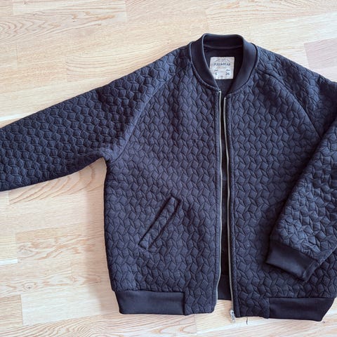 Litt tykk i stoffet, så den er god å ha på vår, høst og kjøligere sommerkvelder:)