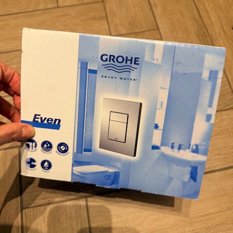 Grohe Even trykkplate til toalett i matt svart utførelse. Rektangulær plate med to spyleknapper for dobbelspyling. Kan monteres både vertikalt og horisontalt. Mål ca. 156 x 197 mm, med lav byggehøyde mot vegg. Egnet for innbyggingssisterner fra Grohe som er kompatible med Even-serien.