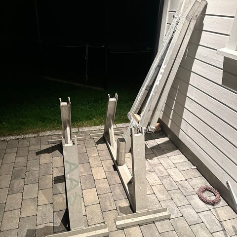 Ubrukt båtstøtte. Justerbar i bredde, høyde og vinkel på annleggsflate til båten.