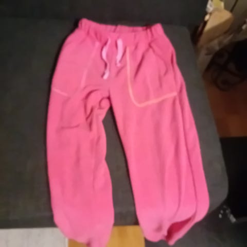 Rosa bukse for jente i størrelse 116. Buksen har strikk i livet og rette ben. Passer til hverdagsbruk, for eksempel sammen med t-skjorte eller genser. Materialet ser ut til å være mykt og behagelig, egnet til lek og fritid.
