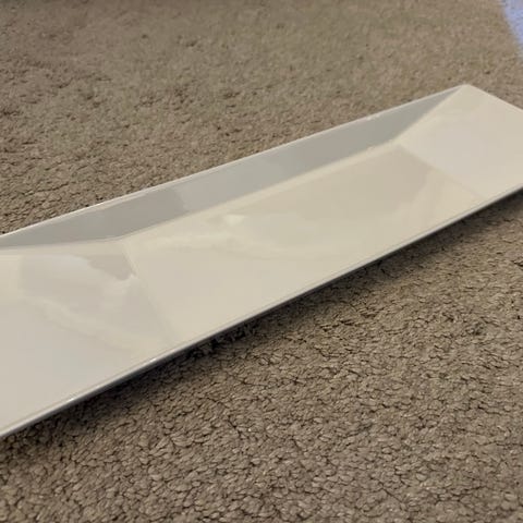 Iittala rektangulært fat i serien Teema. Fatet har rette, lett skrånende kanter og en dyp form som egner seg til servering av for eksempel hovedretter, tilbehør eller kaker. Klassisk, ensfarget design som passer sammen med annet servise fra Iittala eller lignende serviser. Under har fatet Iittala-stempel.