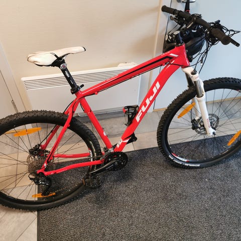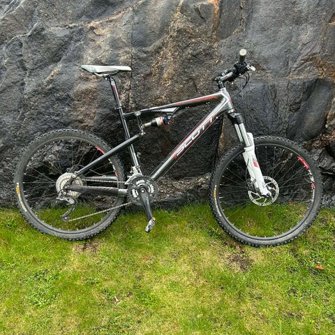 Stisykkel selges. Hjul medfølger ikke. Slitte dempere med 100mm vandring. Noen carbondeler, og drivverk er tålig grei stand.
