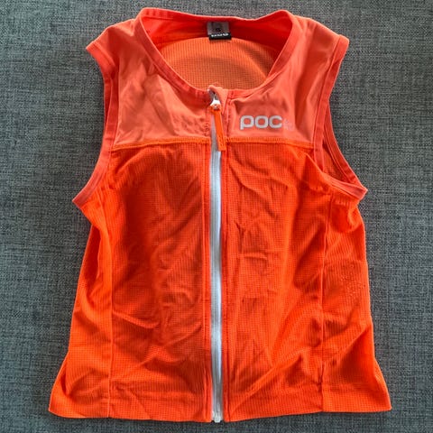 Scott ryggskinnevest for barn i størrelse XS (ca. 124–140 cm / alder 7–9 år). Vesten har integrert ryggbeskyttelse med perforert plate for ventilasjon og elastisk midjebelte for justering og stabilitet. Frontåpning med glidelås og tofarget design i blå og mørk grå. Egnet som beskyttelse ved aktiviteter som sykling, ski eller annen idrett der ryggbeskyttelse er ønskelig. Brukt pent, og er som nye. Selges samlet for 600 kroner.