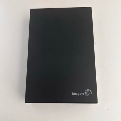 Seagate ekstern harddisk på 2,5" i svart farge. Harddisken kobles til via USB-kabel, som vises på bildene. Passer til lagring og sikkerhetskopiering av filer fra PC eller andre kompatible enheter som støtter USB-tilkobling. Portabel størrelse gjør den enkel å ta med seg. Kapasitet og nøyaktig modellbetegnelse er ikke oppgitt og bør eventuelt sjekkes på etiketten på enheten.