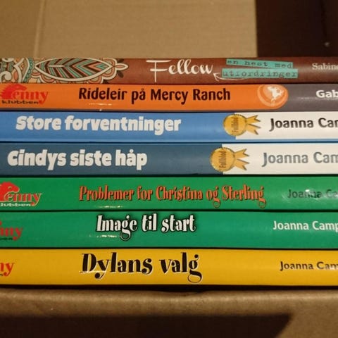 Boks med hestemotiv selges. Låsbar, hvis man har en hengelås, men er uten lås. To ponnibøker selges også. Kr 50 for boks, kr 40 for ponnibok, kr 60 for Verdens hester og ponnier. Kr 120 samlet.