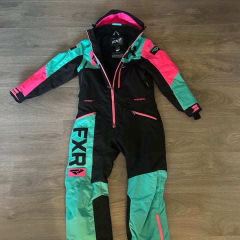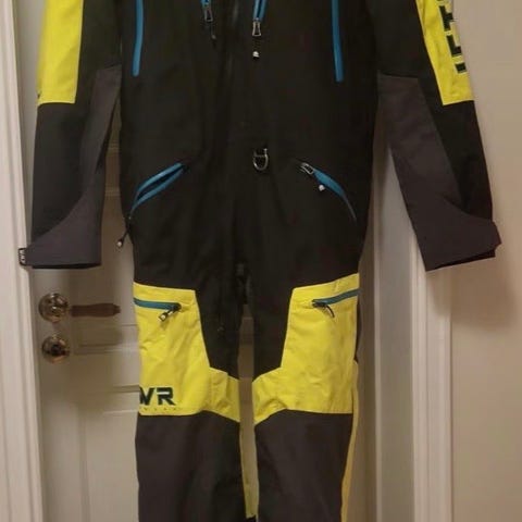 Klim snøscooterdress i størrelse medium. Éndelt dress i lilla, gul og svart med hette og flere glidelåslommer. Utformet for bruk på snøscooter og andre vinteraktiviteter der det er behov for beskyttende yttertøy. Brukt 1 sesong, den er ikke vasket etter bruk noe som er mulig☺️ Til vanlig er jeg en Smal men godt å ha en dress som en har mulighet til å ha litt ekstra klær under☺️