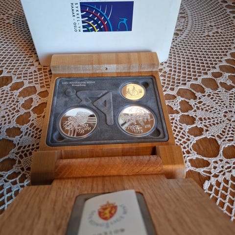 Sett med tre minnemynter utgitt i forbindelse med sykkel-VM 1993 i Norge (Hamar–Oslo). Myntene ligger i original innmat fra Den Kongelige Mynt, Kongsberg, med preget motiv av syklist og påskrifter som viser til mesterskapet.