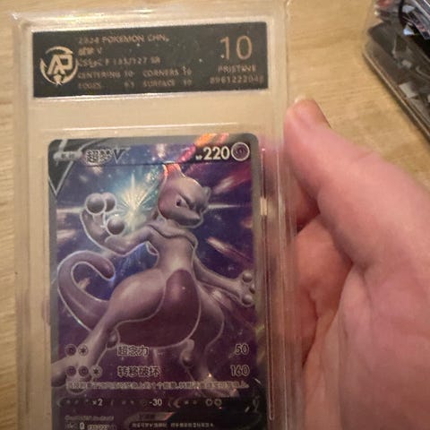 Selger et gradert Mewtwo V SWSH229 promo-kort fra Pokémon GO Elite Trainer Box.
