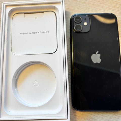 Selger en rød iPhone 11. Mobilen er i god stand, med god batteritilstand (85%) og ingen defekter.