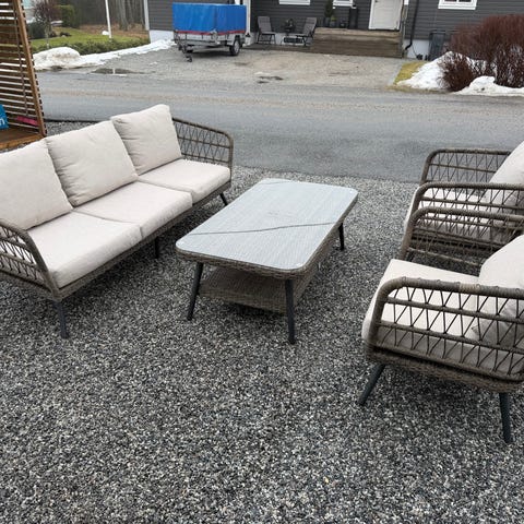 Loungemøbler til utendørs bruk. 4 stykk ( kun 3 på bildet da det 4 ikke ble brukt og har fremdeles prislappen på). Dyr fri hushold.