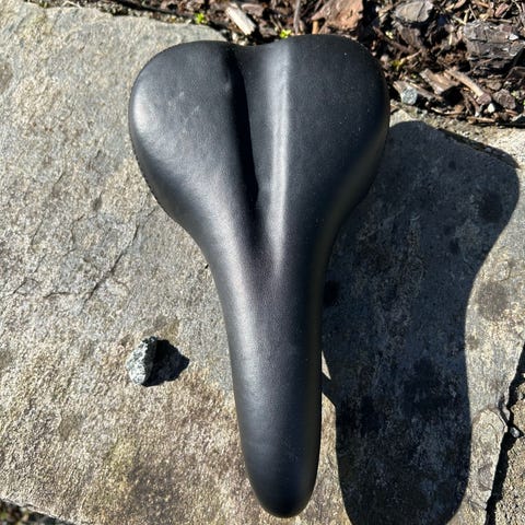 Ettersom resten av sykkelen ble stjålet, ligger dette sete å samler støv.