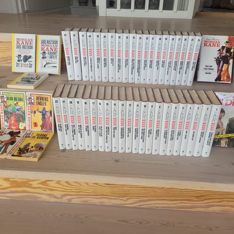 Selger komplett innbundet serie Morgan Kane av Louis Masterson (Bladkompaniet), bind 1–43.