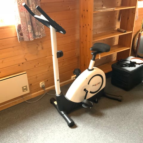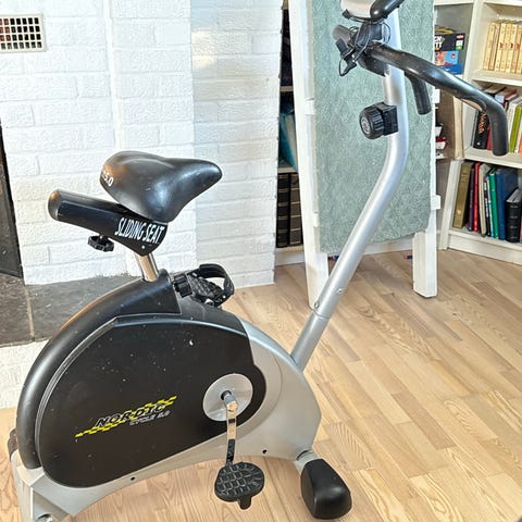 Maxfit Silver KS01 trimsykkel i grå utførelse. Sykkelen har justerbart sete og manuell motstandsregulering via dreiehjul under setet. Stabil ramme med støttebøyler foran og bak. Egnet til innendørs kondisjonstrening og oppvarming hjemme. Pedaler med fotreimer for bedre feste under bruk. Litt dårlig gjenger på setelås, men kan antagelig limes/fikses.