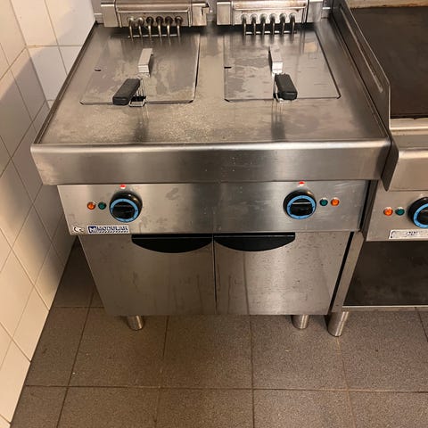 Egnet for bruk i storkjøkken, restaurant, kantine eller lignende profesjonelle kjøkkenmiljøer der det er behov for frityrsteking og koking/varming av mat. Detaljer som nøyaktig modellbetegnelse, effekt og mål fremgår ikke av bildene og bør eventuelt måles eller kontrolleres ved befaring.
