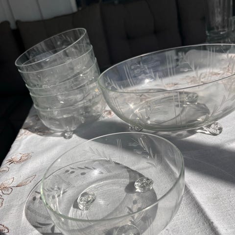 Vintage La Mediterranea skåler og mønstret frostet glass